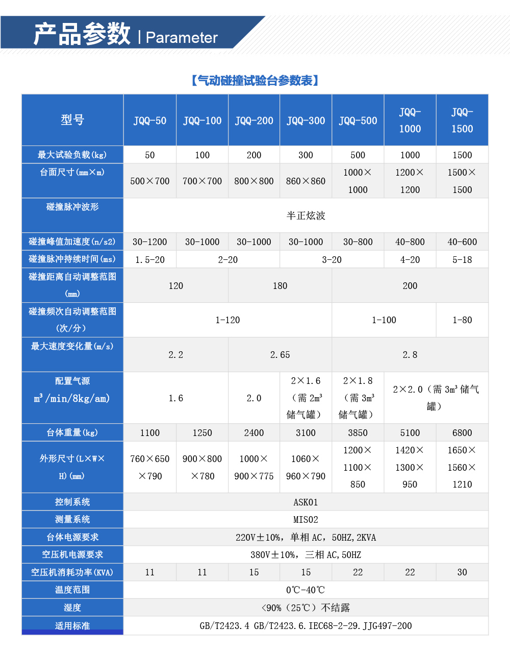產(chǎn)品型號:JQQ-100 品牌:劍 喬 用途:氣動碰撞試驗臺:用于實驗室模擬產(chǎn)品在實際使用中,需要承受的連續(xù)沖擊破壞的能力,以此來評定產(chǎn)品結(jié)構(gòu)的抗沖擊能力,并通過試驗數(shù)據(jù),優(yōu)化產(chǎn)品結(jié)構(gòu)強度。正確評定產(chǎn)品的連續(xù)咨詢熱線:13829135130